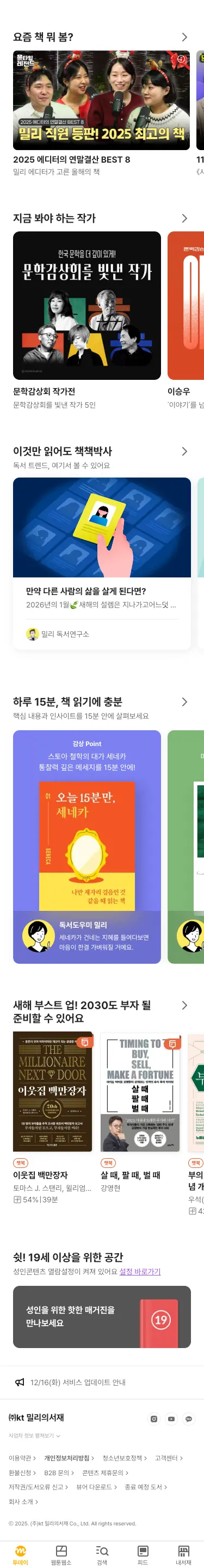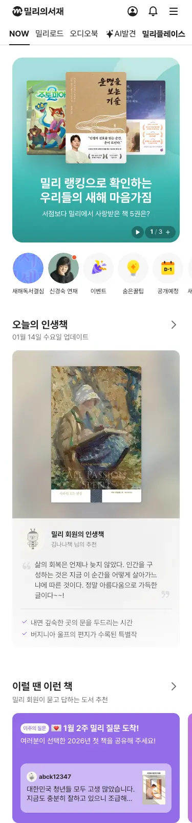 밀리의서재 웹사이트는 독서 콘텐츠의 가치와 탐색 경험을