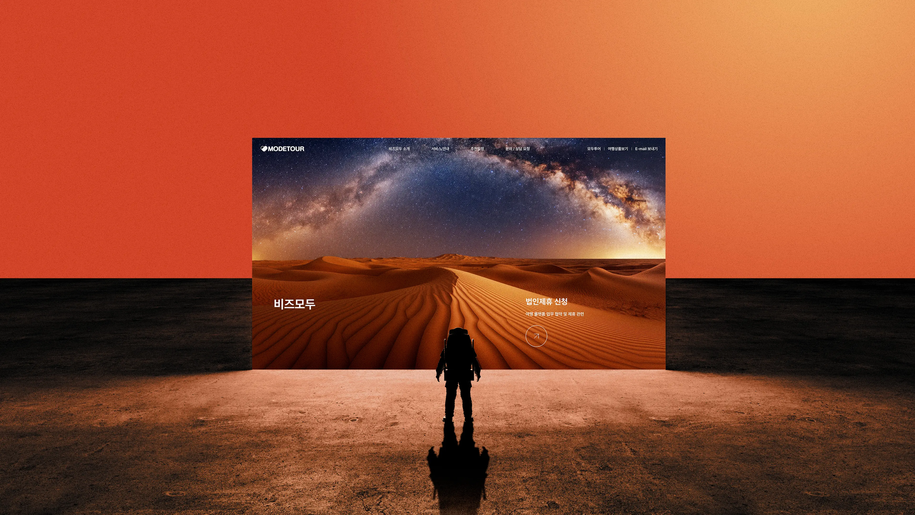 통해 비즈모두 소개 → 서비스 안내 → 추천 일정 → 문의/상담