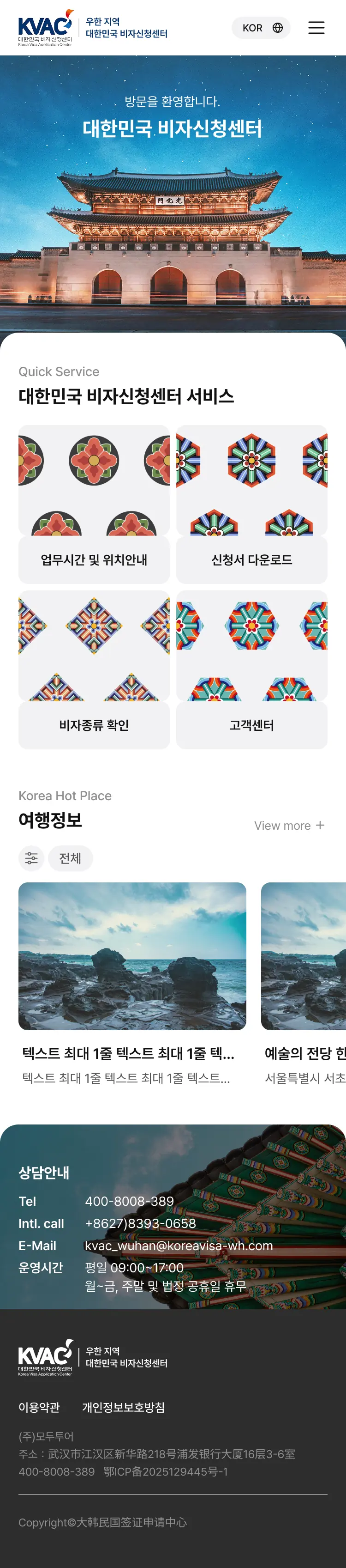 설계된 이 웹사이트는 우한 및 주변 지역에서 대한민국 비자를